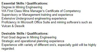 If prior to you gaining your mining degree and getting site experience as a pleb, you worked as a store manager at McDonalds, use that to your advantage! Describe your “Supervisory or Management training and experience”. That is the exact terms that any tracking software and recruiter will be looking for when it gets to them. They, like all humans, want to read what they have written. Make their job easier and use their words to frame your experience.